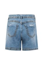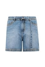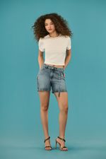 Bermuda boyfriend feminina Patogê em jeans de algodão com elastano. Bolso relógio, bolsos posteriores com pespontos, cós com passantes, cinto fino do próprio tecido com tachas de 2 em 2 cm e fechamento por zíper e botão. Lavanderia média marmorizada com marcação de costura.A modelo da foto veste tamanho 38.Medidas da modelo: Altura 1,74m Busto 88cm Cintura 65cm Quadril 99cmESPECIFICAÇÕES: Modelagem: Bermuda boyfriend Tecido: Jeans Composição: 98% algodão 2% elastano Lavanderia: Média Gênero: Feminino Referência: BE38764 850238764Dica: Para prolongar a vida das suas peças de roupa, laveas sempre a baixas temperaturas e do avesso, desta forma ajuda a preservar as cores e a estrutura do tecido e reduz o consumo de energia.