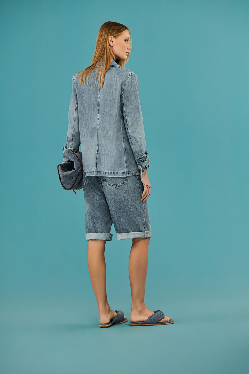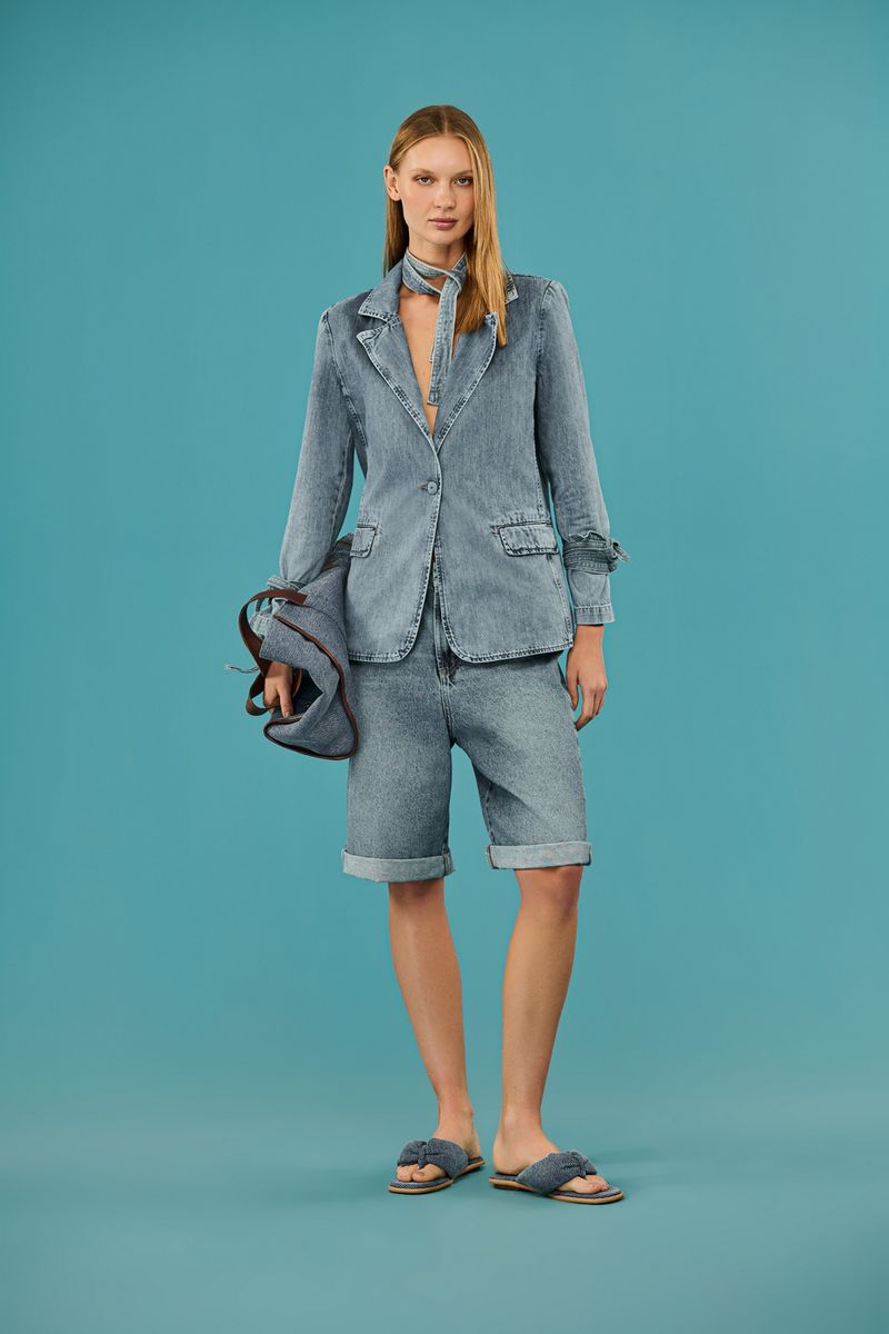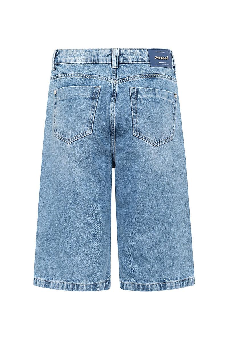 Bermuda reta feminina Patogê em jeans 100% algodão. Aposta da marca para a estação mais quente do ano, a bermuda promete compor os looks mais despojados da temporada e se tornar item atemporal. Bolsos frontais, bolsos posteriores, cós com passantes e fechamento por zíper e botão. Lavanderia média para clara marmorizada com marcação de costura.