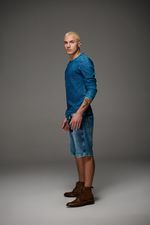 Bermuda masculina Patogê em jeans de algodão com elastano proporcionando conforto durante o uso. Detalhe de pespontos duplos laterais, bolsos frontais tradicionais, bolsos posteriores, cós com passantes e fechamento por zíper e botão. Lavanderia média para clara marmorizada com marcação de costura. O modelo da foto veste tamanho 40.Medidas da modelo: Altura 1,85m Tórax 95cm