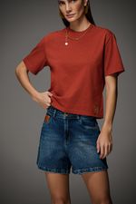 Bermuda new boyfriend feminina Patogê em jeans de algodão com elastano proporcionando conforto durante o uso. Modelo versátil com detalhe de bolso relógio em material cintético, tom predominante na temporada. Bolsos frontais tradicionais, bolsos posteriores, cós com pespontos duplos e passantes. Fechamento por zíper e botão. Lavanderia média para escura marmorizada com marcação de costura. Peça da mesma família: CL39682. A modelo da foto veste tamanho 38. Medidas da modelo: Altura 1,74m Busto 88cm Cintura 65cm Quadril 99cm