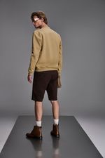 Bermuda masculina Patogê em sarja de algodão com elastano proporcionando conforto durante o uso. Bolsos frontais estilo faca, bolsos posteriores embutidos, cós com passantes e fechamento frontal por zíper e botão. Duas opções de cor.