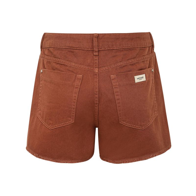 Bermuda new boyfriend feminina Patogê em sarja de algodão. Bolso relógio, bolsos frontais, bolsos posteriores, cós com passantes, fechamento por zíper e botão. Duas opções de cores.