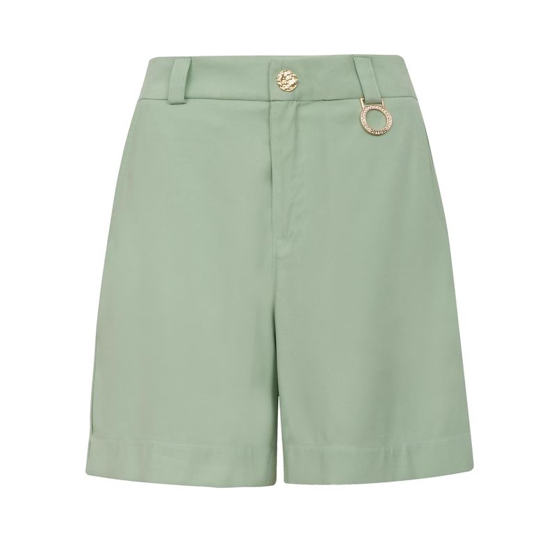 Bermuda feminina Patogê confeccionada em tecido de viscose com poliéster. Alfaiataria versátil com bolsos estilo faca, bolsos posteriores e pingente cravejado exclusivo da marca. Fechamento por zíper e botão. Duas opções de cor. Opção para conjunto: CO38980.