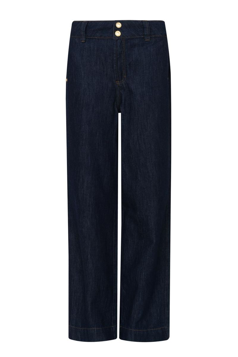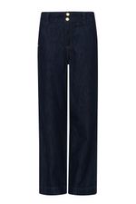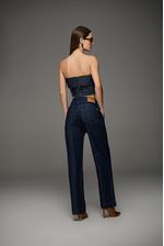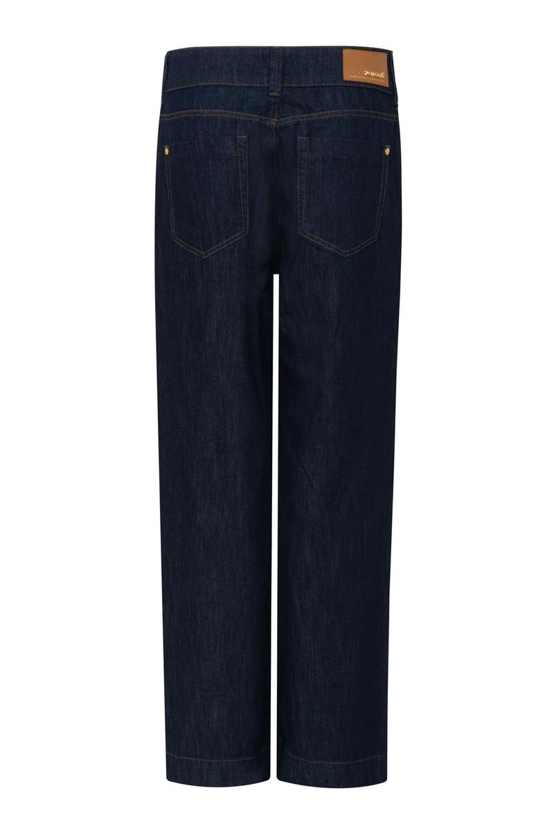 Calça reta feminina Patogê em jeans 100% algodão. Peça que segue a linha da alfaiataria conferindo elegância e sofisticação as produções da temporada. Bolsos frontais estilo faca, bolsos posteriores, cós largo com passantes e fechamento por zíper e botões de pressão. Lavanderia escura stonada evocando a forte tendência raw denim para o inverno. Peças da mesma família: CO39692 e SH39693.A modelo da foto veste tamanho 38. Medidas da modelo: Altura 1,74m Busto 88cm Cintura 65cm Quadril 99cm