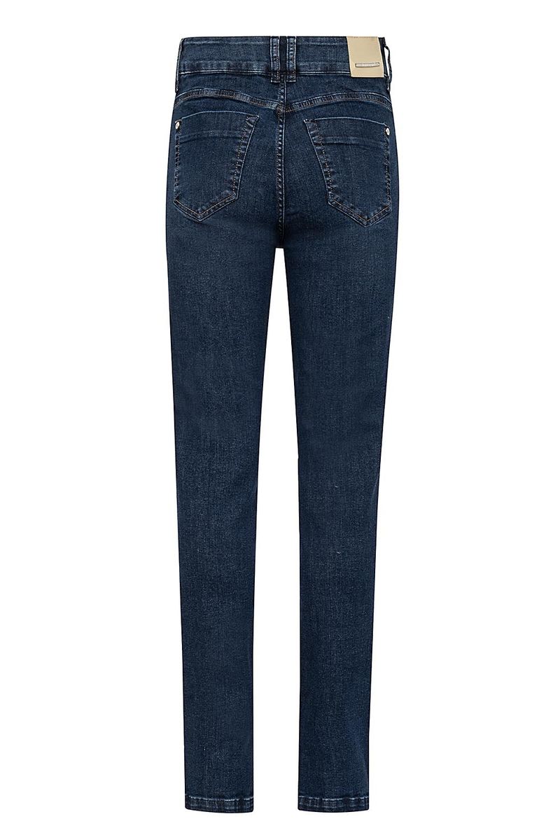 Calça skinny G4 feminina Patogê em jeans de algodão com elastano proporcionando conforto durante o uso. Bolsos frontais, bolsos posteriores, fendas internas nas barras, cós largo com passantes e fechamento por zíper e botões. Lavanderia média para escura stonada com marcação de costura.