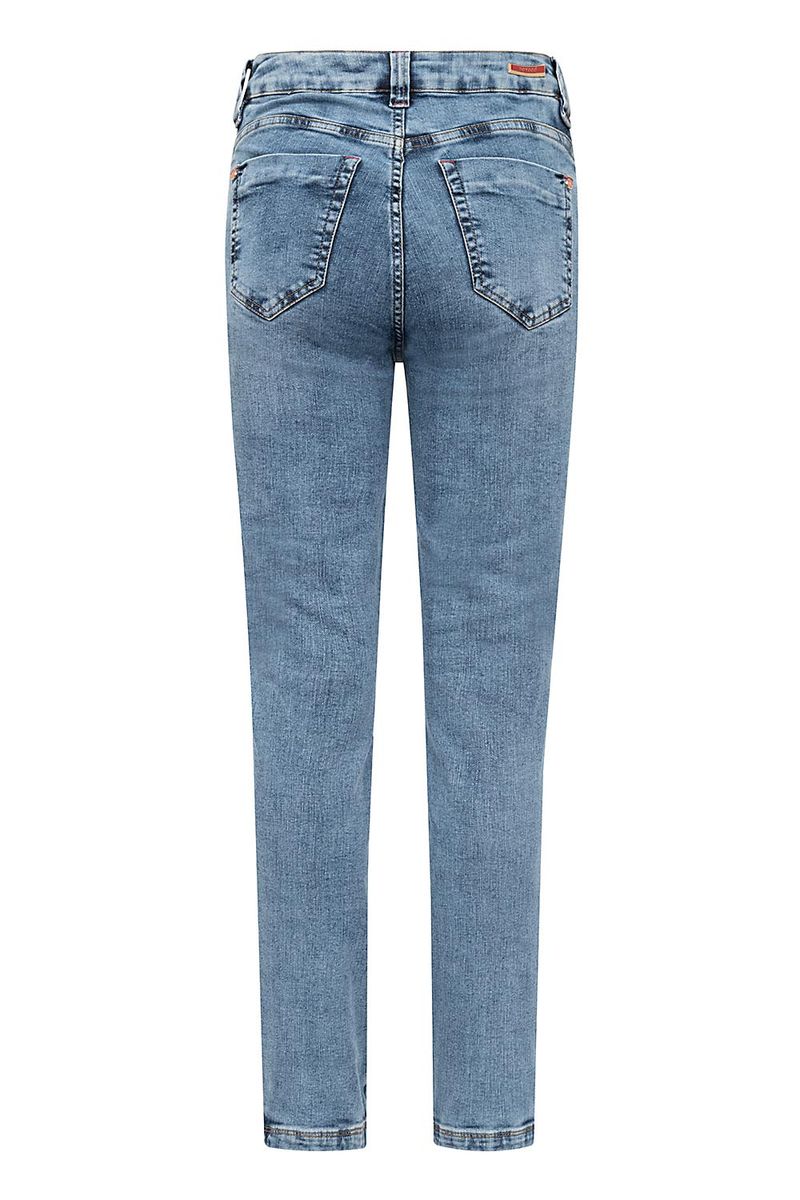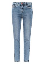 Calça skinny G3 feminina Patogê em jeans de algodão com elastano proporcionando conforto durante o uso. Detalhe de ilhós no bolso relógio, pespontos em tom contrastante, bolsos frontais, bolsos posteriores, comprimento definido, cós com passantes e fechamento por zíper e botão. Lavanderia média para clara marmorizada com marcação de costura.