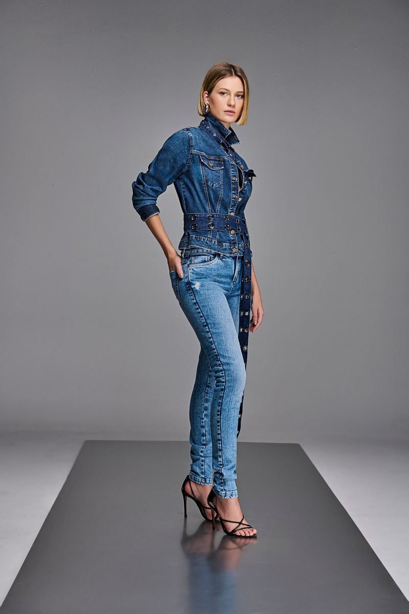 Calça Patogê feminina skinny em jeans de algodão com elastano, proporcionando conforto durante o uso. Cós com passantes e fechamento frontal por zíper e botão. Lavanderia escura com marcação de costura.A modelo da foto veste tamanho 38.Medidas da modelo: Altura 1,80m Busto 84cm Cintura 61cm Quadril 92cmESPECIFICAÇÕES: Modelagem: Skinny Tecido: Jeans Composição: 97% algodão 3% elastano Lavanderia: Média Gênero: Feminino Referência: CL90032 850190032Dica: Para prolongar a vida das suas peças de roupa, laveas sempre a baixas temperaturas e do avesso, desta forma ajuda a preservar as cores e a estrutura do tecido e reduz o consumo de energia.