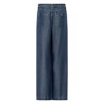 Calça pantalona feminina Patogê em jeans 100% liocel. Cós com roletê do próprio tecido, pregas, bolsos posteriores quadrados e fechamento por zíper e abotoamento interno. Lavanderia média.A modelo da foto veste tamanho 38.Medidas da modelo: Altura 1,76m Busto 78cm Cintura 64cm Quadril 96cm
