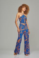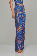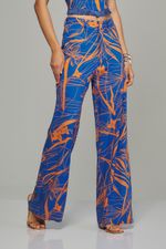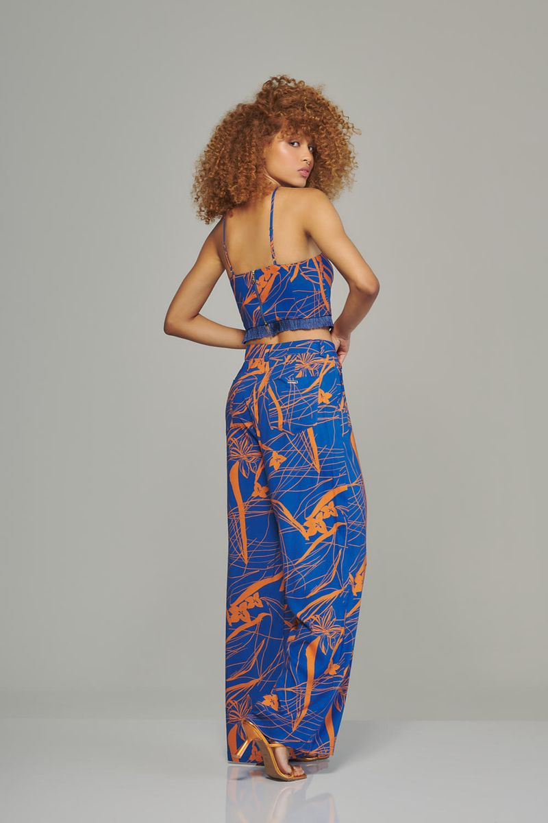 Calça Patogê feminina pantalona cintura alta (G4) estampa exclusiva confeccionada em tecido de viscose. Barra tradicional, bolsos faca, bolsos posteriores, cós com passantes e fechamento frontal por zíper e botão.