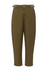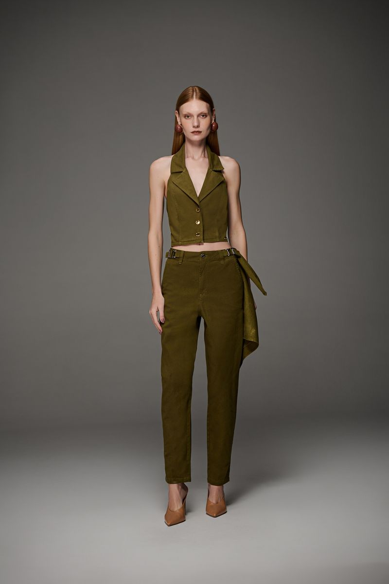 Calça balloon feminina Patogê em sarja 100% algodão. Modelagem moderna e casual com toque de cor conferindo estilo as produções da estação. Detalhe regulável no cós com metal personalizado da marca. Bolsos frontais estilo faca, bolsos posteriores e fechamento por zíper e botão. Peça tingida em processos de lavanderia com duas opções de cores. A modelo da foto veste tamanho 38. Medidas da modelo: Altura 1,74m Busto 88cm Cintura 65cm Quadril 99cm.