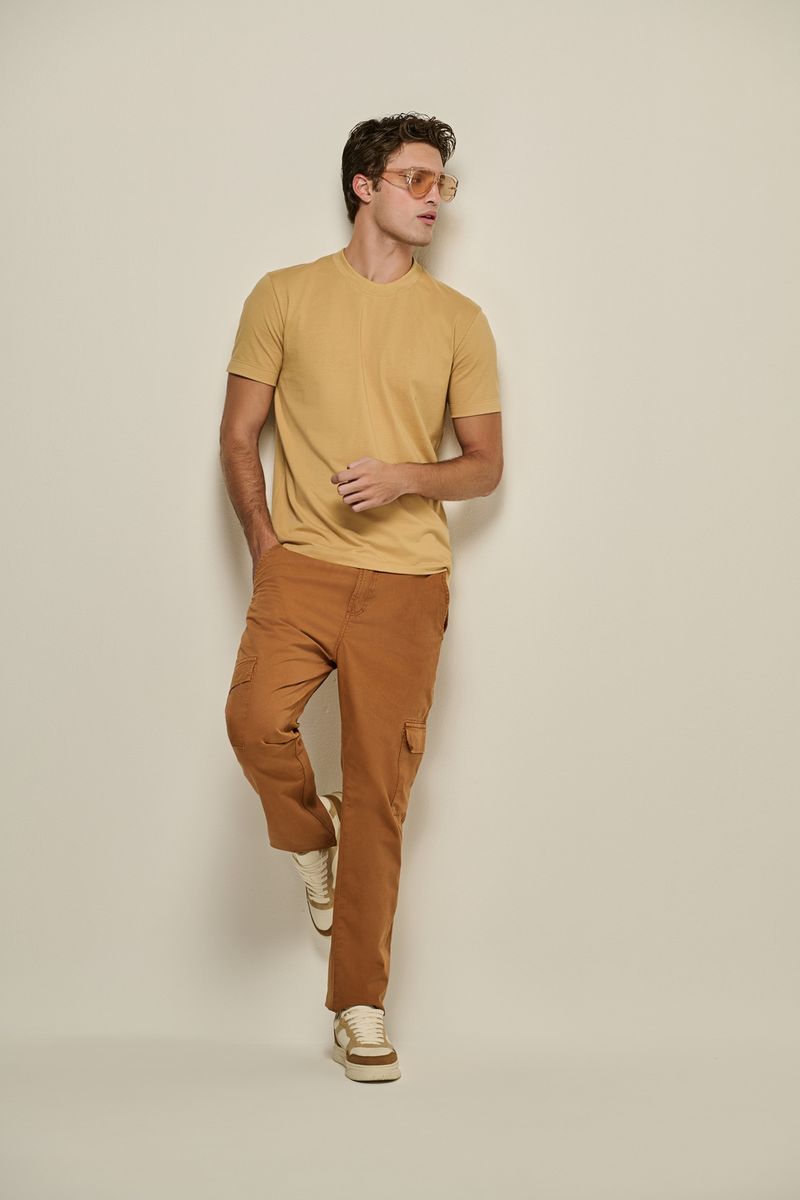 Calça reta masculina Patogê em sarja 100% Algodão. Bolsos frontais estilo faca, bolsos cargo nas laterais, bolsos posteriores, cós com passantes e fechamento por zíper e botão. Lavanderia com processos de tingimento e duas opções de cor.O modelo da foto veste tamanho 40.Medidas da modelo: Altura 1,85m Tórax 95cmESPECIFICAÇÕES: Modelagem: Reta Tecido: Sarja Composição: 100% algodão Cores: Marrom e bege Gênero: Masculino Referência: CL39476 850139476Dica: Para prolongar a vida das suas peças de roupa, laveas sempre a baixas temperaturas e do avesso, desta forma ajuda a preservar as cores e a estrutura do tecido e reduz o consumo de energia.