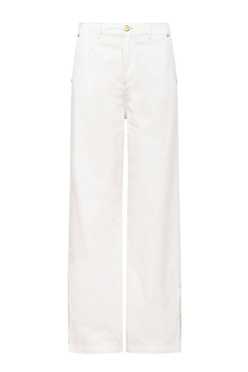 Calça reta over feminina Patogê em sarja 100% algodão. Bolsos frontais estilo faca, bolsos posteriores, fendas laterais nas barras, cós com passantes e fechamento por zíper e botão. Lavanderia com processos de tingimento e duas opções de cor.