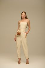 A modelo da foto veste tamanho 38. Medidas da modelo: Altura 1,76m - Busto 78cm - Cintura 64cm - Quadril 96cm ESPECIFICAÇÕES: • Modelagem: Baggy • Tecido 1: Viscose • Composição: : 90% viscose 10% poliéster • Tecido forro: : 95% poliéster 5% elastano • Cores: Bege claro e azul claro • Referência: CL38974- 850138974 Dica: Para prolongar a vida das suas peças de roupa, lave-as sempre a baixas temperaturas e do avesso, desta forma ajuda a preservar as cores e a estrutura do tecido e reduz o consumo de energia.
