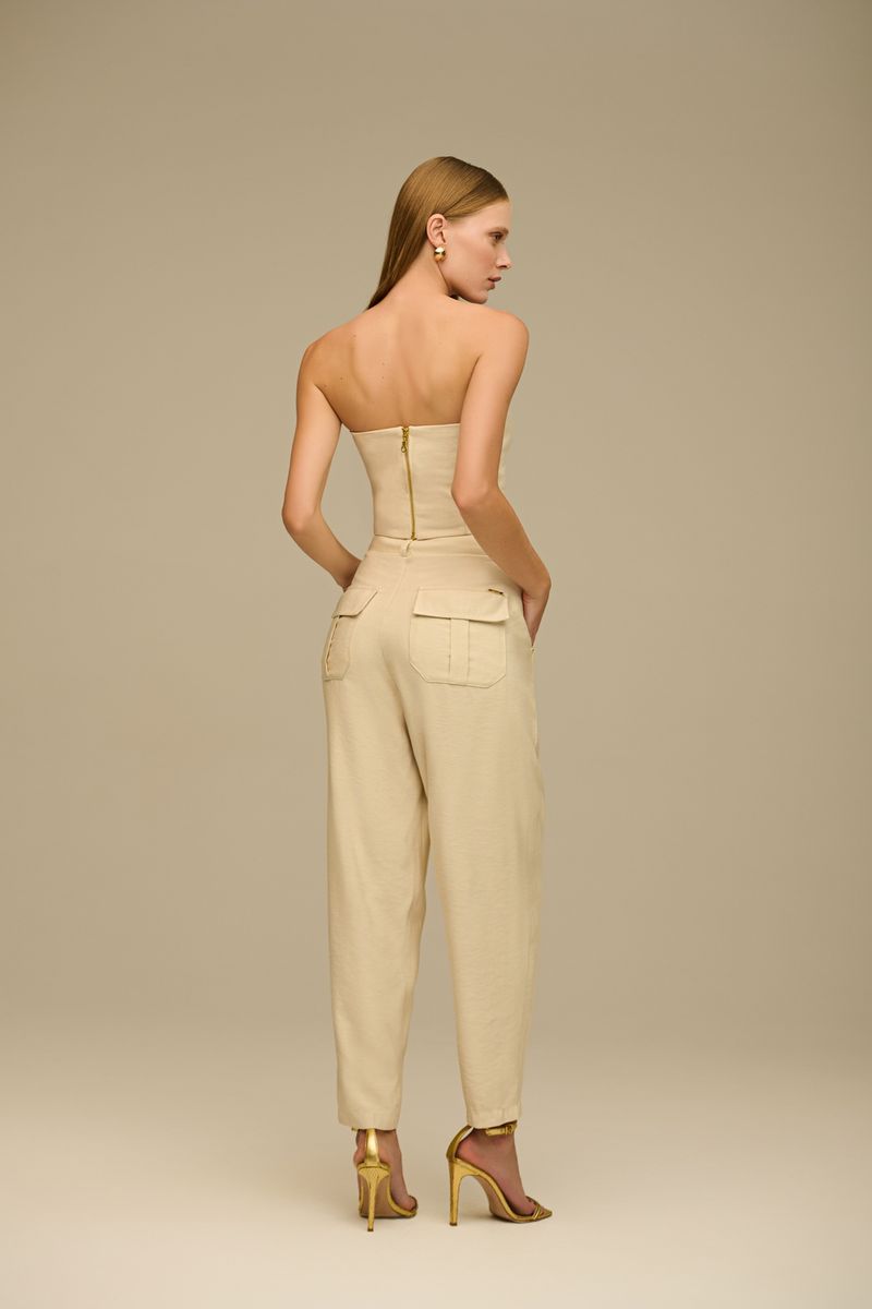 Calça baggy feminina Patogê confeccionada em tecido de viscose com poliéster. Bolsos frontais estilo faca com forro estampado, bolsos posteriores com tampa, cós com passantes e fechamento por zíper e botão. Duas opções de cor. Peças da mesma família: TP38973 e BZ38972.