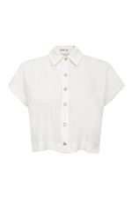 Camisa cropped feminina Patogê confeccionada em tecido leve ideal para o verão. Comprimento assimétrico com barras abauladas, mangas curtas, gola tradicional de fechamento por abotoamento.A modelo da foto veste tamanho P.Medidas da modelo: Altura 1,75m Busto 89cm Cintura 67cm Quadril 96cmESPECIFICAÇÕES: Modelagem: Camisa manga curta Tecido: Linho e viscose Composição: 55% linho 45% viscose Cor: Offwhite Gênero: Feminino Referência: CA39352 850739352Dica: Para prolongar a vida das suas peças de roupa, laveas sempre a baixas temperaturas e do avesso, desta forma ajuda a preservar as cores e a estrutura do tecido e reduz o consumo de energia.