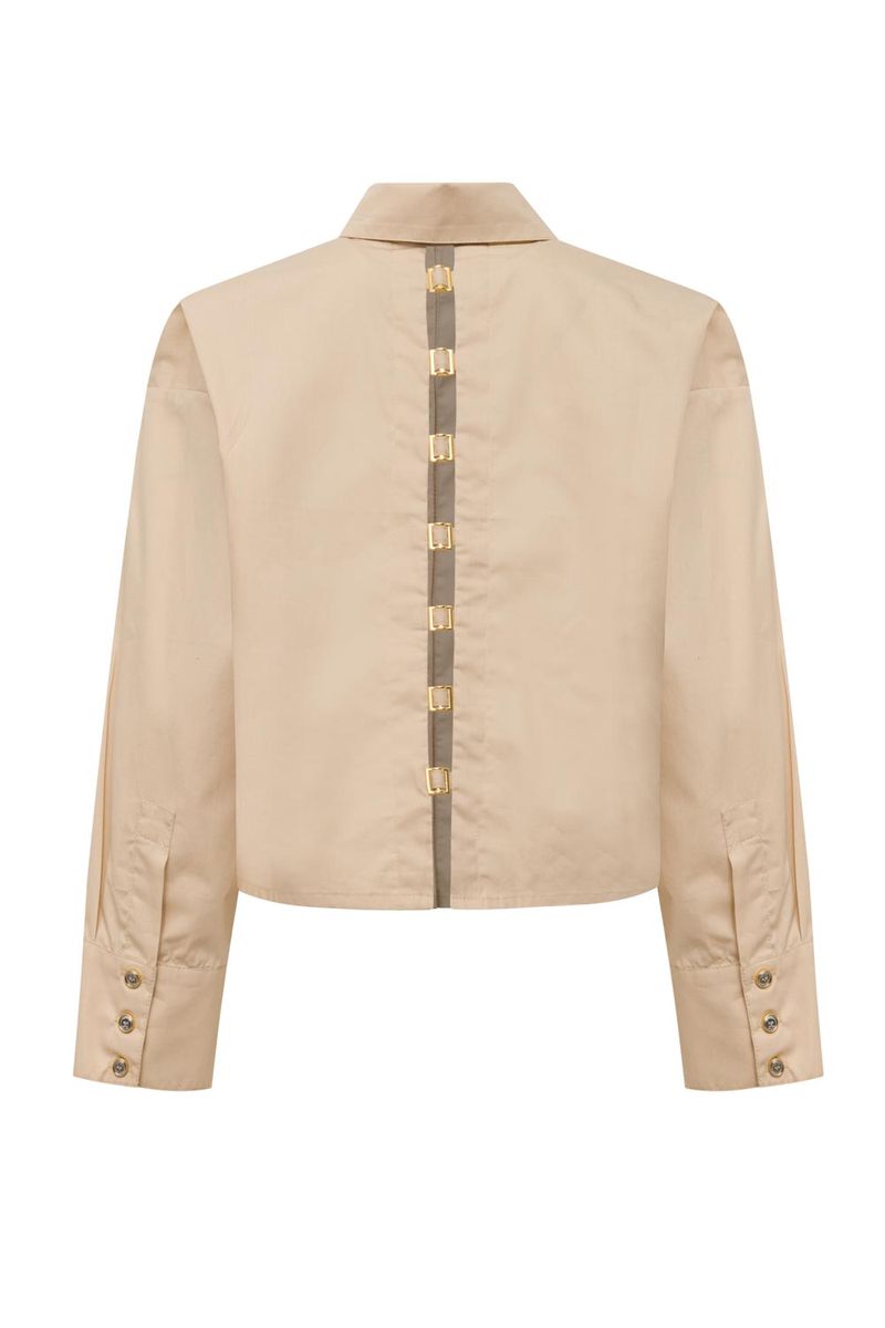 Camisa feminina Patogê em tecido 100% algodão. Com proposta inovadora, a peça conta com detalhe vazado nas costas composto por aletas do próprio tecido e metais, conferindo toque moderno e especial a uma peça tradicional do vestuário. Mangas longas com sutil evasê nos punhos, gola tradicional e fechamento por abotoamento. Duas opções de cores.A modelo da foto veste tamanho 38. Medidas da modelo: Altura 1,74m Busto 88cm Cintura 65cm Quadril 99cm