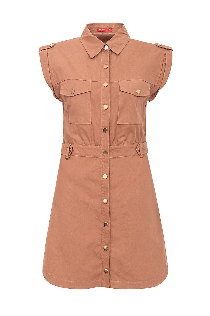 Chemise feminina Patogê em sarja 100% algodão. Modelo versátil que valoriza o corpo com gola tradicional, detalhe de aleta nas mangas e cintura, bolsos funcionais, barra abaulada e fechamento frontal por abotoamento. Lavanderia com processos de tingimento e duas opções de cor.A modelo da foto veste tamanho 36.Medidas da modelo: Altura 1,75m Busto 84cm Cintura 63cm Quadril 90cmESPECIFICAÇÕES: Modelagem: Chemise manga curta Tecido: Sarja Composição: 100% algodão Cores: areia e mocha Gênero: Feminino Referência: VE39415 850539415Dica: Para prolongar a vida das suas peças de roupa, laveas sempre a baixas temperaturas e do avesso, desta forma ajuda a preservar as cores e a estrutura do tecido e reduz o consumo de energia.