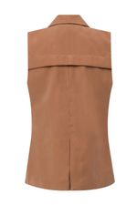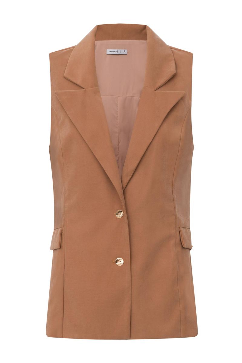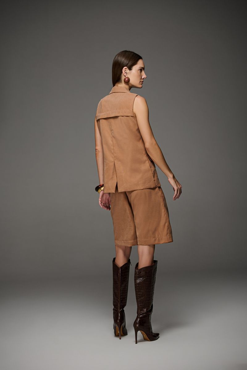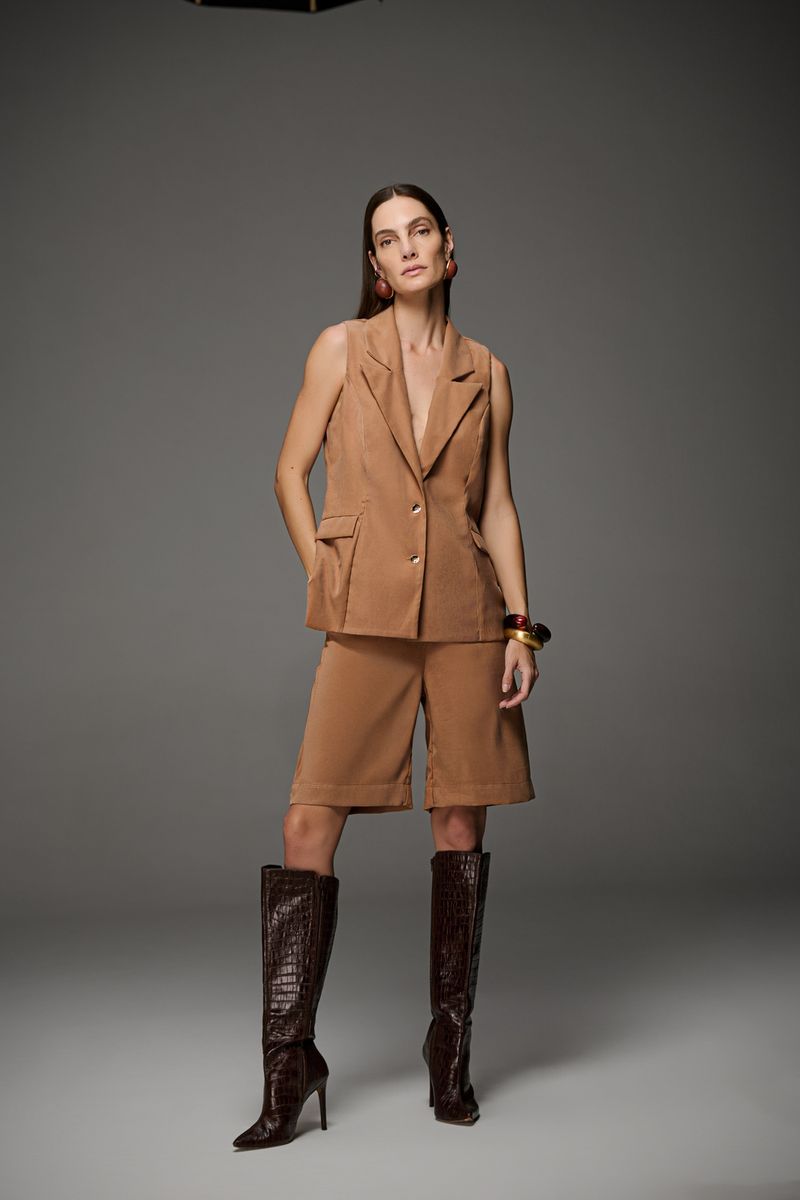 Colete feminino Patogê em alfaiataria conferindo elegância e sofisticação a peça. Recortes que valorizam o corpo, detalhe de prega e fenda posteriores, lapelas frontais e fechamento por abotoamento. Peça forrada com primoroso acabamento interno. Duas opções de cores. Peças da mesma família: BE39777 e TP39776. A modelo da foto veste tamanho 38Medidas da modelo: Altura 1,74m Busto 88cm Cintura 65cm Quadril 99cm