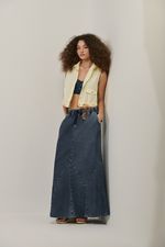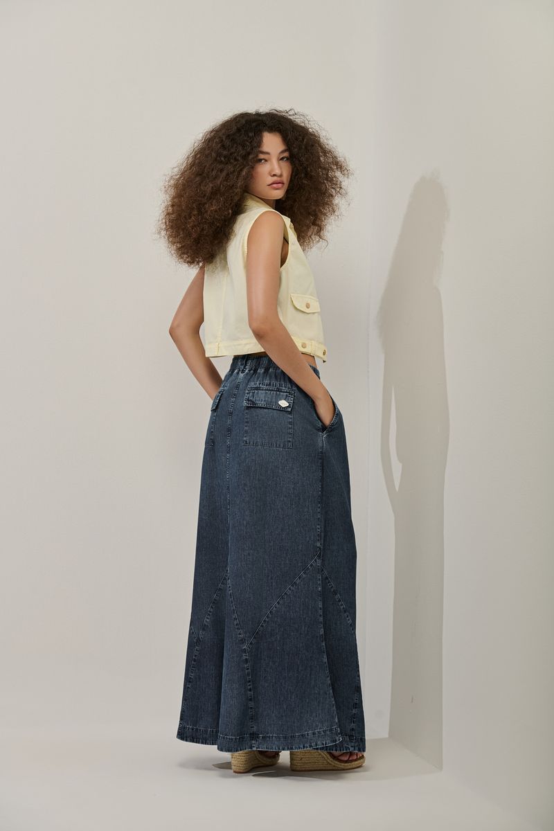 Saia longa feminina Patogê em jeans 100% algodão. Bolsos frontais estilo faca, bolsos posteriores com tampas, nesgas nas barras, cós com elástico e ajuste por cadarço. Lavanderia média para escura com marcação de costura.A modelo da foto veste tamanho 36.Medidas da modelo: Altura 1,75m Busto 84cm Cintura 63cm Quadril 90cmESPECIFICAÇÕES: Modelagem: Saia Longa Tecido: Jeans Composição: 100% algodão Lavanderia: Média para escura Gênero: Feminino Referência: SA39320 850639320Dica: Para prolongar a vida das suas peças de roupa, laveas sempre a baixas temperaturas e do avesso, desta forma ajuda a preservar as cores e a estrutura do tecido e reduz o consumo de energia.