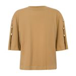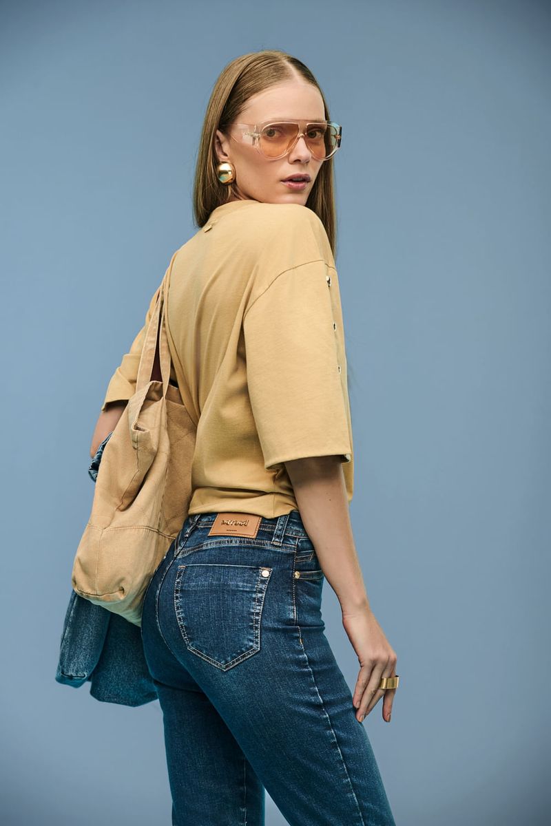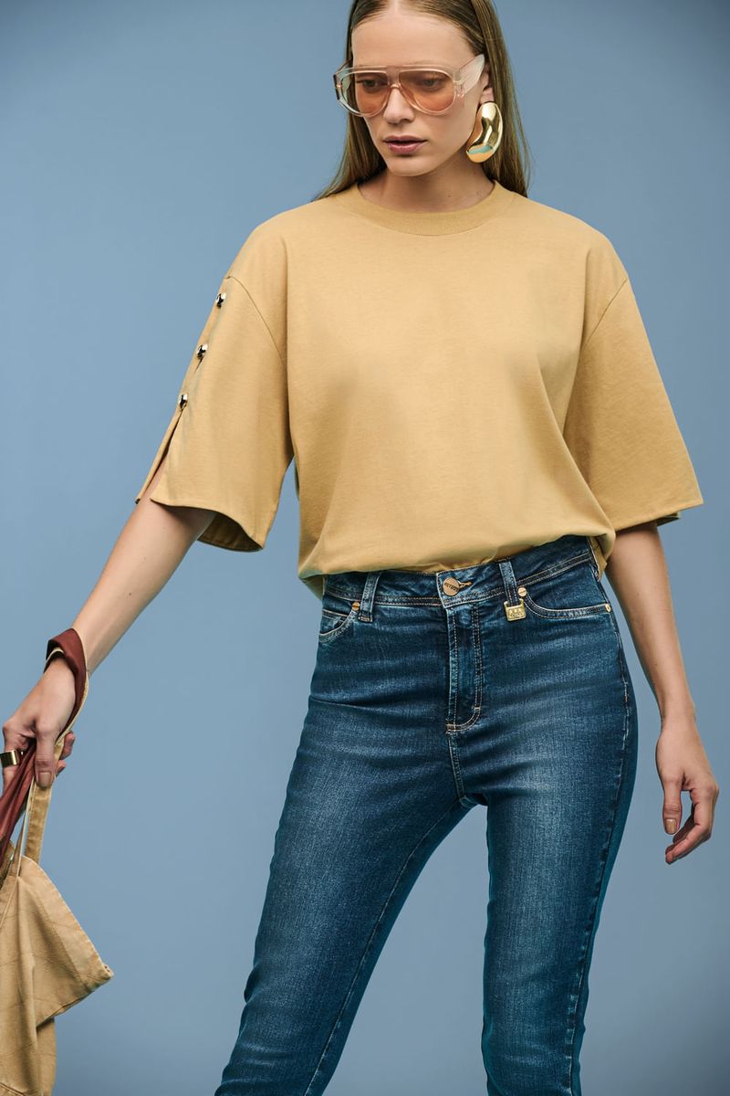 T-shirt feminina Patogê em malha 100% algodão. Modelagem ampla e confortável, fendas nas mangas com detalhe metálico e gola em ribana. Duas opções de cor.