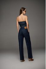 Top feminino Patogê em jeans de gramatura leve 100% algodão. Modelo sofisticado e elegante ideal para produções sóbrias da estação. Lapela sobreposta no busto, aplicação de lastéx para melhor vestibilidade e fechamento posterior por zíper destacável. Peça amaciada em processos de lavanderia evocando o raw denim, forte tendência da temporada. Peças da mesma família: BE39617 e MC39618. A modelo da foto veste tamanho 38. Medidas da modelo: Altura 1,74m Busto 88cm Cintura 65cm Quadril 99cm