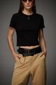 Tshirt baby tee feminina Patogê em malha de algodão com elastano proporcionando conforto durante o uso. Detalhe de recorte e costura aparente na altura dos ombros e nas laterais conferindo a peça um ar despojado e moderno. Pingente metálico exclusivo da marca fixo ao decote e gola em ribana. Três opções de cores. A modelo da foto veste tamanho 38. Medidas da modelo: Altura 1,74m Busto 88cm Cintura 65cm Quadril 99cm