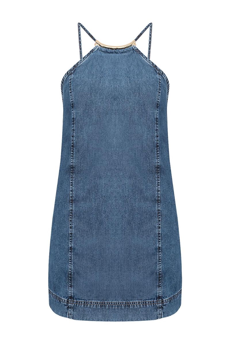 Vestido curto feminino Patogê em jeans 100% algodão. Modelo fresh ideal para o verão com detalhe em metal no decote estilo cava americana valorizando o colo. Bolsos laterais, alças reguláveis e fechamento por zíper. Lavanderia média para clara marmorizada com marcação de costura.A modelo da foto veste tamanho 38.Medidas da modelo: Altura 1,74m  Busto 90cm  Cintura 66cm  Quadril 99cmESPECIFICAÇÕES: Modelagem: Vestido Curto Tecido: Jeans Composição: 100% algodão Cores: Média para Clara Gênero: Feminino Referência: VE39294  850539294Dica: Para prolongar a vida das suas peças de roupa, laveas sempre a baixas temperaturas e do avesso, desta forma ajuda a preservar as cores e a estrutura do tecido e reduz o consumo de energia.