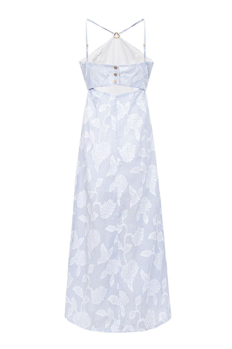 Vestido longo feminino Patogê confeccionado em tecido leve com temas florais em relevo e listras trazendo feminilidade e frescor. Decote estilo cava americana com detalhe em metal, alças reguláveis, volume sutil e fechamento por zíper e botões. Peças da mesma família: BL39796 e CA39842.A modelo da foto veste tamanho 38.Medidas da modelo: Altura 1,74m Busto 90cm Cintura 66cm Quadril 99cmESPECIFICAÇÕES: Modelagem: Vestido Longo Tecido: 100% algodão Forro: 95% Poliéster 5% elastano Gênero: Feminino Referência: VE39419 850539419Dica: Para prolongar a vida das suas peças de roupa, laveas sempre a baixas temperaturas e do avesso, desta forma ajuda a preservar as cores e a estrutura do tecido e reduz o consumo de energia.