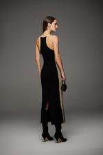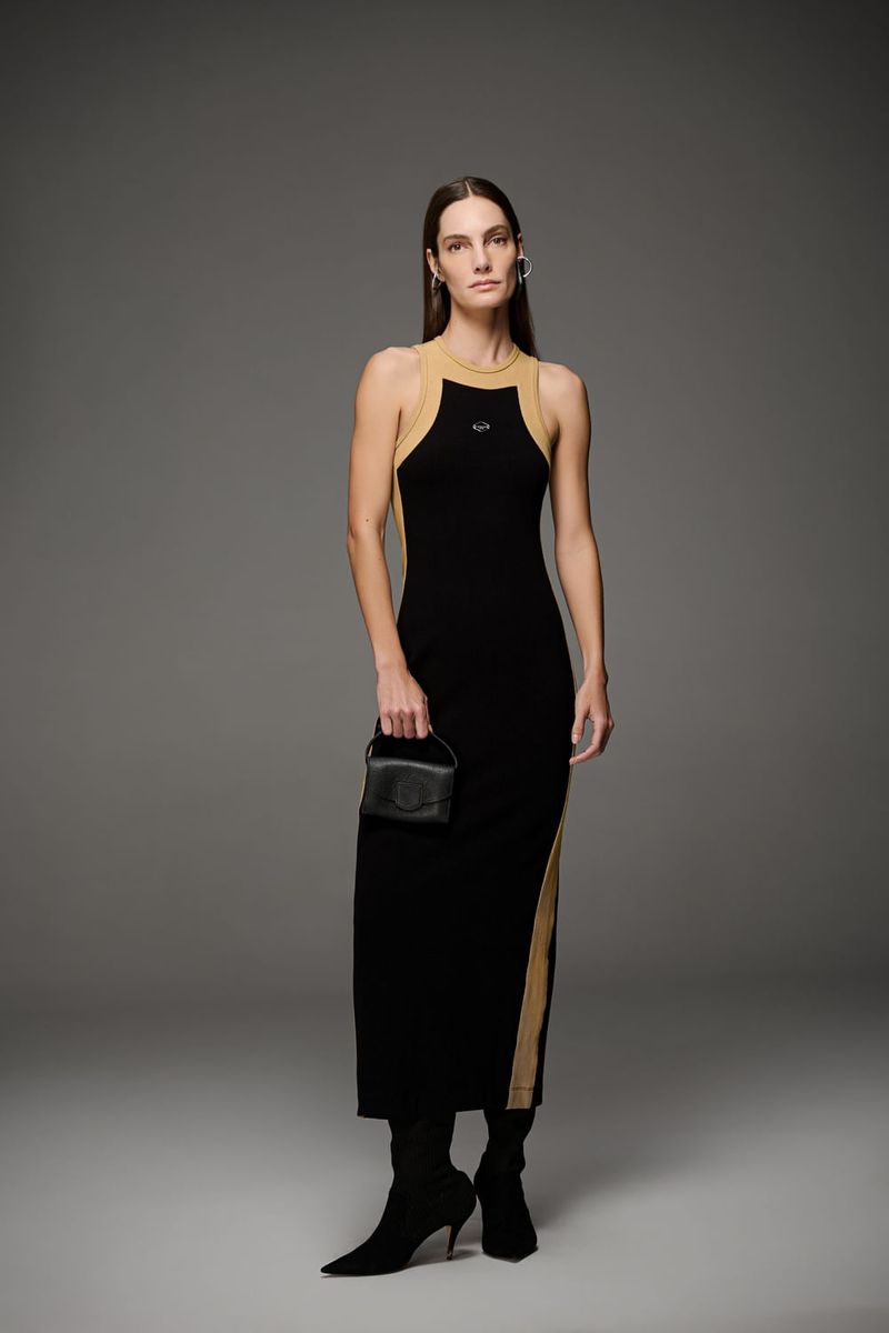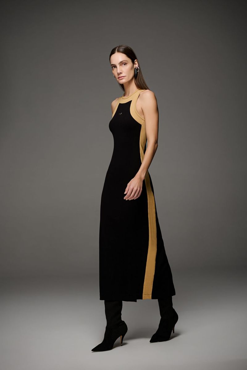 Vestido max midi feminino Patogê confeccionado em malha canelada com excelente vestibilidade. Mistura de tons que desenham a silhueta, modelagem cavada conferindo jovialidade a peça e fenda posterior proporcionando melhor mobilidade. Duas opções de cores. Peça da mesma família: BL39641. A modelo da foto veste tamanho 38.Medidas da modelo: Altura 1,74m Busto 88cm Cintura 65cm Quadril 99cm