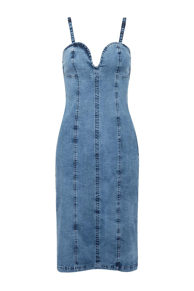 Vestido midi feminino Patogê em jeans de algodão com elastano proporcionando conforto durante o uso. Decote arredondado com estrutura interna, alças removíveis, recortes que valorizam o corpo e fechamento posterior por zíper destacável. Lavanderia média marmorizada com marcação de costura. Peça da mesma família: BL39325.A modelo da foto veste tamanho 36.Medidas da modelo: Altura 1,75m Busto 84cm Cintura 63cm Quadril 90cmESPECIFICAÇÕES: Modelagem: Vestido Midi Tecido: Jeans Composição: 97% algodão 3% elastano Cores: Média Gênero: Feminino Referência: VE39326 850539326Dica: Para prolongar a vida das suas peças de roupa, laveas sempre a baixas temperaturas e do avesso, desta forma ajuda a preservar as cores e a estrutura do tecido e reduz o consumo de energia.